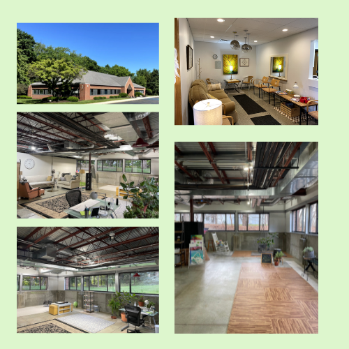 Featuring a 1000 sq ft studio for individual and group bodywork, this space also includes relaxing seating arrangements and adjacent private dressing rooms for those who might want to change from their work clothes into something more comfortable for bodywork (sweat, shorts, soft shoes, etc.).