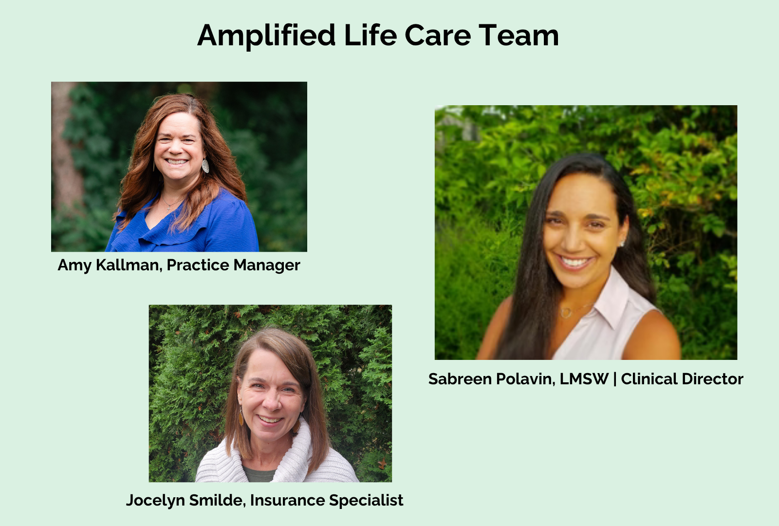 Our therapists share in Amplified LIfe's common-core, Christian values and look forward to serving you